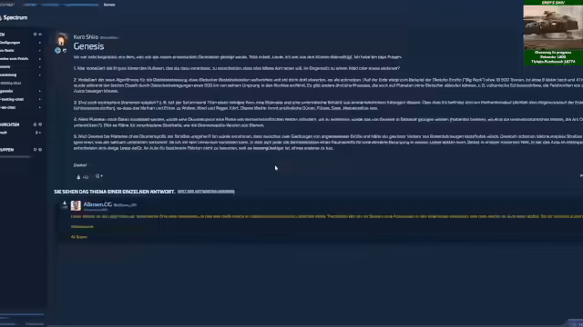 02:33:08Im weiteren Verlauf des Streams wird auf eine Q&A-Antwort von Entwickler Ali Brown zu Genesis eingegangen. Es wird erläutert, warum die Aktualisierung bestehender Planeten so komplex ist: Alle darauf befindlichen Orte müssen neu ausgerichtet werden. Für eine vollständige visuelle Aufwertung müssen auch neue Höhenkarten generiert werden, um Bugs zu vermeiden. Dynamische Elemente wie Wetter sind für die Zukunft geplant.