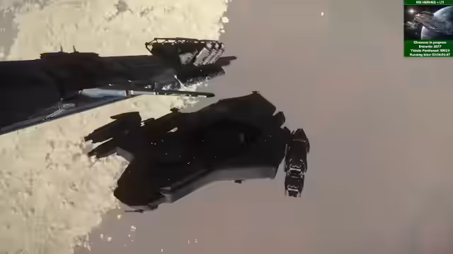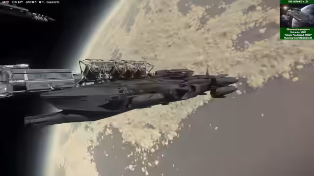 01:52:00Während des Events treten massive Performance-Probleme auf, insbesondere auf dem Planeten Pyro, was die Sammelmission behindert. Der Streamer vermutet, dass die Locations des Planeten nicht gut optimiert sind. Gleichzeitig wird die Gruppe von anderen Spielern, sogenannten 'Griefern', angegriffen und mehrfach mit einem Schuss eliminiert. Als Lösung für beide Probleme, die feindlichen Angriffe und die Performance, beschließt der Streamer, das größte verfügbare Schiff, eine Idris, zu nehmen, um sicher und unangreifbar zu bleiben.