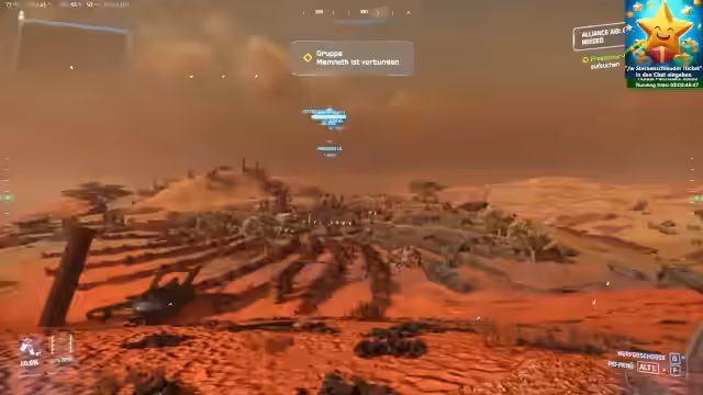 01:38:49Die Sektion widmet sich dem laufenden 'Alliance Aid' Event. Der Streamer betont die Wichtigkeit der Gruppensuche im Discord und der Teamarbeit, um die Quests effizient zu erledigen. Es werden sogenannte 'Squadrons-Karten' verlost, um neue Mitspi anzulocken. Die Gruppe wird stetig vergrößert, um mehr Leute für das Event zu gewinnen. Gleichzeitig tauchen technische Probleme auf, wie eine Performance-Einbruch in Pyro und der Ausfall eines 'Persos' für die Kämpfe. Die Feinde, sogenannte 'Guardians', werden aus der Luft bekämpft, während die Gruppe gleichzeitig Pilze sammelt.