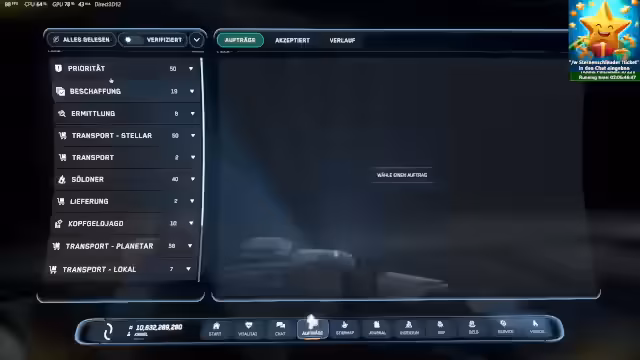 05:50:33Der Streamer nimmt an mehreren Hauling-Quests teil, um Punkte für das Event zu sammeln. Er nutzt eine Hull C, um große Mengen an Fracht von Port Olisar nach Levski zu transportieren. Dabei wird deutlich, dass das Schiff mit seiner vollen Ladung sehr träge ist und frühes Bremsen erforderlich ist, um sicher zu landen. Das automatische Beladen und Entladen im Hangar funktioniert meist problemlos.