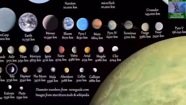 00:13:31Es wird ein Bild von Star Citizen geteilt, das die Größenverhältnisse der Planeten zueinander und im Vergleich zur Realität darstellt. Dabei wird betont, dass die Monde im Spiel um den Faktor 6 und die Planeten um den Faktor 10 vergrößert sind. Dies führt zu interessanten Überlegungen, wie groß die Planeten in der Lore im Vergleich zur Ingame-Größe wären. So wäre beispielsweise die Erde fast gleich groß wie Monox, Hurston fast doppelt so groß wie die Erde und der Mond Lyria hätte fast die Größe der Erde. Crusader wäre sogar etwas größer als die Erde. Es wird vorgeschlagen, einen Screenshot des Bildes zu machen, um die Größenverhältnisse zu vergleichen und ein Gefühl für die Dimensionen in Star Citizen zu bekommen. Die Zahlen auf dem Bild entsprechen den Lore-Größen, während die Ingame-Größen um den genannten Faktor reduziert sind.