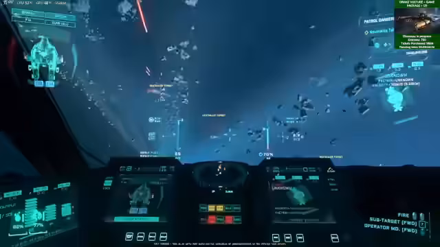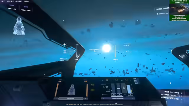 00:21:09Da der Tech Preview noch nicht gestartet ist, wechselt der Streamer zum Gameplay in Patch 4.4. Es werden das neue Schadensmodell, die Raumsysteme und die Sauerstoffversorgung getestet. Während der Fliegen zu einer Quest in Nyx fällt auf, dass die Point Defense-Turrets scheinbar verbuggt sind und nicht auf feindliche Ziele feuern. Auch die Musik in Location fehlt oder spielt nicht korrekt ab. Die Performance in Nyx wird als mittelmäßig bewertet, mit Problemen beim Laden von Objekten.