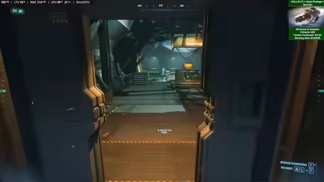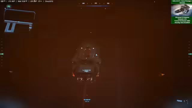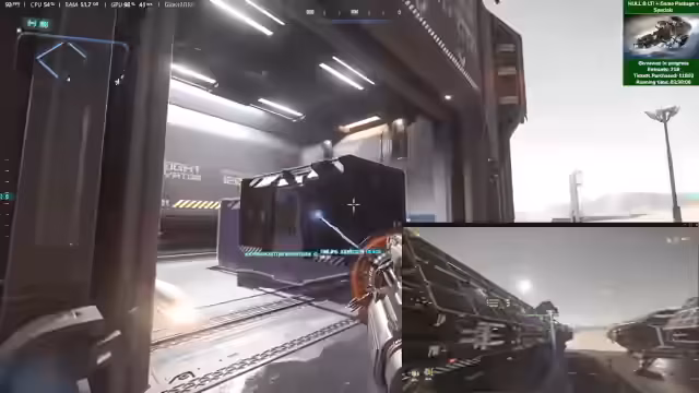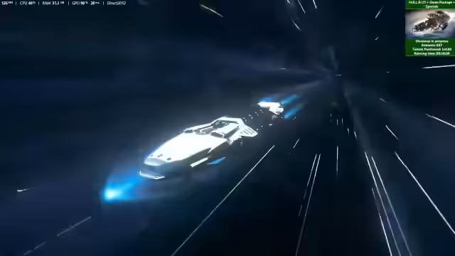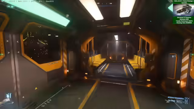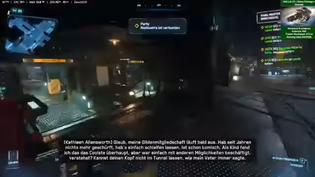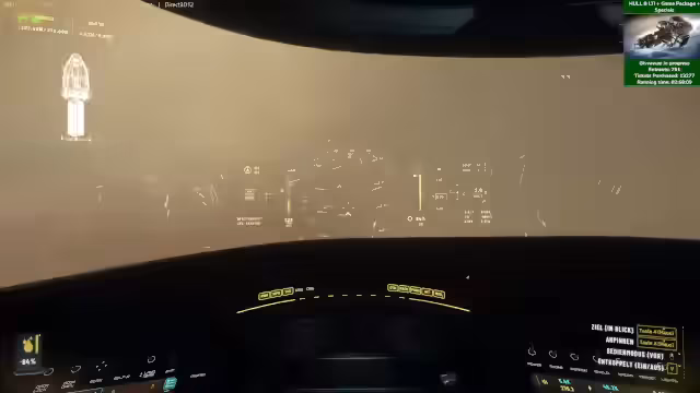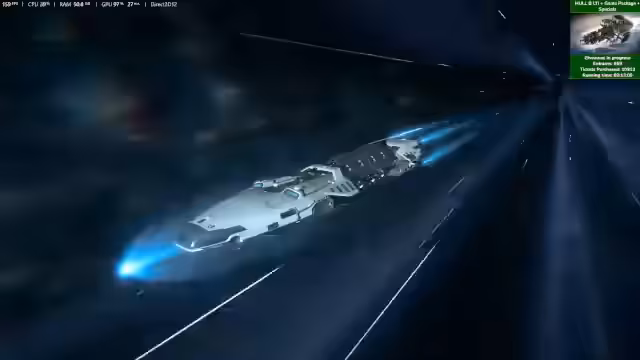 04:00:29Der Fokus des Streams liegt auf dem Gameplay mit der Hull B. Nachdem verschiedene Skins, wie der Bienen-Skin, getestet wurden, wird eine Hauling-Quest angenommen. Das Schiff muss für die Mission umgerüstet werden, wobei Quantum Drive und Jump Drive getrennt verbaut werden müssen, was zu einem technischen Bug führt und den Antrieb unbrauchbar macht. Nach der Reparatur wird die Ladung, bestehend aus vielen kleinen Kisten, mit dem Traktorstrahl aufgenommen und zur Ruinen Station in Terminus befördert, wo sie erfolgreich entladen wird.