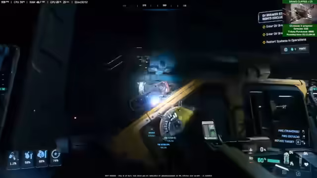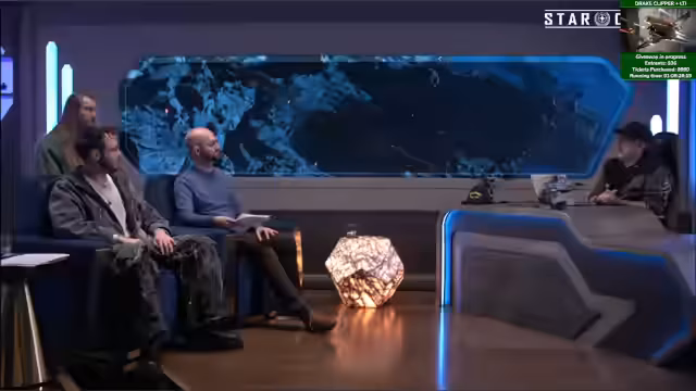 05:14:20Nach der Erklärung zum Status der Arastra, wird eine Drake Cutty mit Drake Clipper verlost. Danach startet die Gruppe eine gemeinsame Quest in einer Mining-Station. Dabei wird auf die neuen Features der Argo Mole eingegangen, die nun mehr Stauraum und bessere Organisationsoptionen bietet. Während der Vorbereitung auf die Mission werden verschiedene technische Ungenauigkeiten im Spiel, wie ein Audio-Bug und Kollisionen, erwähnt und kurzfristig gelöst.
