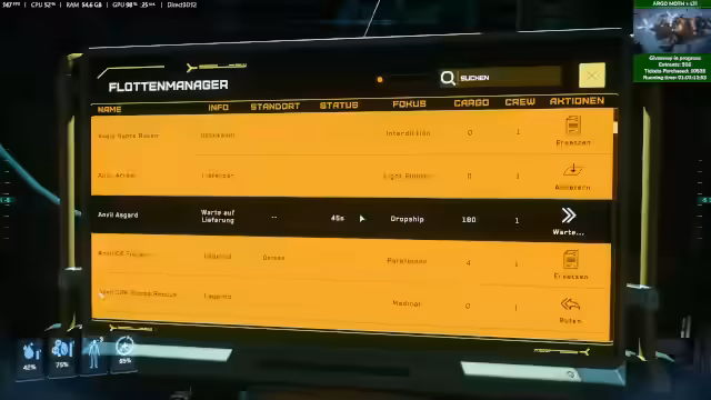 01:58:38Bei der Durchführung einer quest im Spiel treten wiederholt technische Probleme auf. So ist es nicht möglich, direkt zur Ziellocation zu springen, was einen Serverwechsel erforderlich macht. Innerhalb der Station kommt es zu Spawn-Bugs, bei denen NPCs nicht erscheinen, und es werden Performance-Einbrüche von bis auf 20 FPS festgestellt, was als ein Problem der Engine und nicht der Hardware identifiziert wird. Auch das plötzliche Ausfallen Schiffssysteme ohne ersichtlichen Grund wird als instabiler Bug beschrieben.