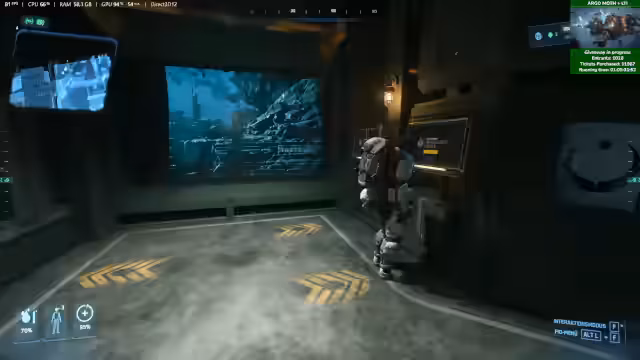 02:23:49Das Hauptziel der aktuellen Mission ist das Finden von 'Pristine-Artefakten' in blauen Kisten auf einem Frachtdeck. Nachdem die NPCs besiegt wurden, werden die Kisten geöffnet. Zwar wird ein großes, makelloses Artefaktfragment gefunden, doch der Erfolg wird durch technische Hindernisse getrübt: Notwendige Tablets für die Mission werden nicht gefunden und der Zugang zum Lootraum funktioniert zunächst nicht einwandfrei, was die Durchführung schwierig macht.