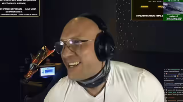 04:00:40Der Streamer moderiert humorvolle Community-Interaktionen, darunter den 'Durst-Stream' und den absurden 'Starwurst'-Bug, bei dem ein virtueller Gegenstand wiederholt in einem Hangar klebt. Es folgt eine Debatte über Ästhetik in Sci-Fi-Spielen, das Verschenken von Plüschtieren an Zuschauer und eine satirische Diskussion über 'Glühstängel'-Stände auf Weihnachtsmärkten, bevor der Fokus auf die Planung eines schrottwichtelähnlichen Events in Star Citizen wechselt.