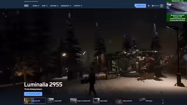 03:05:35Als Jahresabschluss-Giveaway wird das Raumschiff 'Galaxy' inklusive LTI (Lifetime Insurance) verlost. Teilnahme via angepinntem Link im Chat. Neben der Galaxy gibt es 10$-Giftcards, Bonus-Stars und ein gelb-schwarzes Subscriber-Armor-Set. Parallel läuft eine Tisch-Aktion mit 35% Rabatt auf geschenkte Abonnements. Bis zum Sonntag können maximal 200 Tickets gesammelt werden, auch ohne Stars nutzbar.