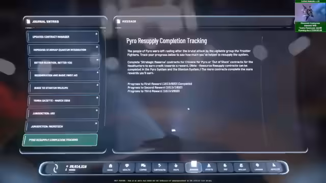 00:20:51Der Streamer präsentiert den neuen PTU-Patch 7.3.9.3.6, der Warn-Pop-Ups angepasst hat. Das Hauptaugenmerk liegt auf dem Supply or Die Event, speziell mit einer Mission in Pyro. Die Mission soll mit der Hull C automatisiertes Hauling ermöglichen, was im Stream getestet wird. Die Belohnungen für die Quest sind extrem hoch, was zu einer potenziellen Verdienstmöglichkeit von 250 Millionen Alpha UEC pro Run führt und das Potenzial des Events unterstreicht.