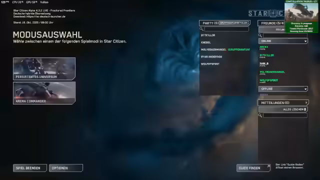 01:24:04Eine Zuschauerfrage bezüglich der Kühler im Kampf wird beantwortet: Aktuell haben Kühler keine Funktion und können ausgeschaltet werden, um Energie auf Schilde, Waffen und Antriebe zu lenken. Dies ändert sich jedoch mit dem zukünftigen Engineering-Gameplay. Die einzige aktuelle Auswirkung ausgeschalteter Kühler ist eine geringfügige Erhöhung der Signatur. Des Weiteren wird ein häufiges Problem beim Einloggen in Star Citizen, der Fehlercode 70003, thematisiert. Dieser Fehler tritt oft bei Nutzern mit dualem Internet (Festnetz plus 5G) auf, wobei das Deaktivieren von 5G meist Abhilfe schafft. Der Streamer äußert sein Bedauern über die anhaltenden Bugs und die Kritik an CIG, die er auf unerfüllte Versprechungen und nicht behobene Grundprobleme zurückführt.