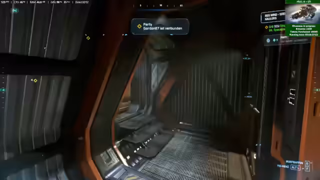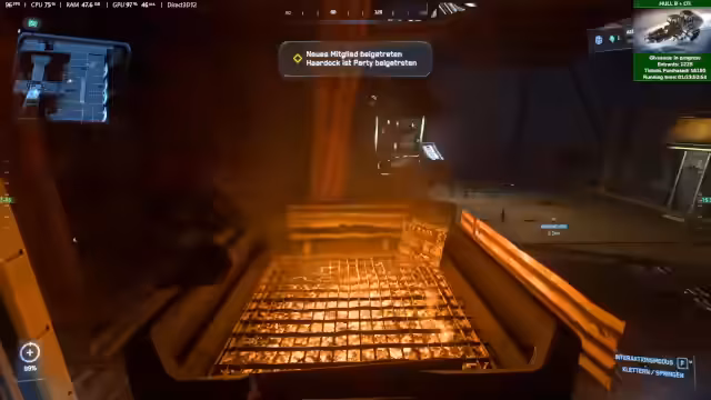 00:34:27Nach Ankündigung und Neuigkeiten geht es ins Gameplay. Eine Gruppe von bis zu 40 Spielern wird für das gemeinsame Grinden von Blueprints und Missionsinhalten gebildet. Der Streamer will eine zuvor gecraftete Parallax-Waffe testen und muss neue Munition besorgen. Die Gruppe muss Friend Requests an Sleeper1337 schicken, um dem Server beizutreten und gemeinsame Missionen zu teilen. Es herrscht ein entspannter und kooperativer Ton, während das Team auf den Rest wartet und technische Unannehmlichkeiten anspricht.