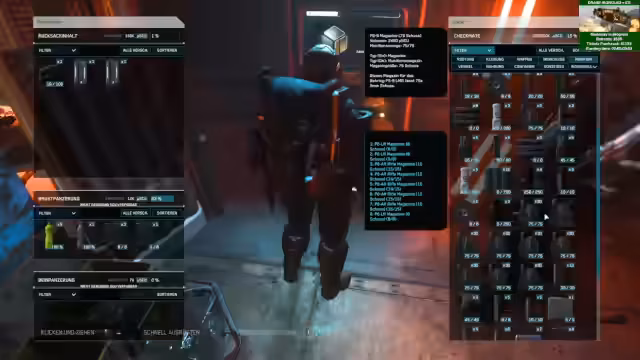 06:40:03Es wird erklärt, wie die Waffenauswahl funktioniert, wobei die rechte Waffe immer zuerst ausgewählt wird. Es kommt zu einem Kampf, bei dem der Streamer Unterstützung anbietet. Nach dem Kampf wird gelootet und die eingesammelten Waffen werden begutachtet. Es wird festgestellt, dass die Visiere zuvor verbuggt waren, aber jetzt wieder funktionieren. Es wird überlegt, ob man etwas kaufen soll und die benötigte Menge für die Small-Quest wird ermittelt. Es werden 20 Kisten für 2,3 Millionen gekauft, was für einige Quests reichen sollte. Der Frachtaufzug wird benutzt, um die Kisten zu verladen. Es wird darauf hingewiesen, dass es sich um die PvP-Variante handelt und jederzeit andere Spieler angreifen könnten, wodurch das investierte Geld verloren gehen könnte.