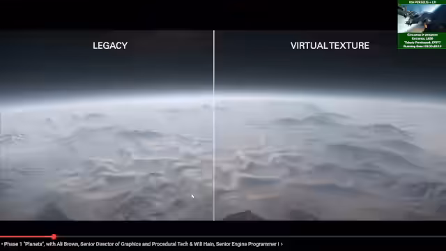 07:26:10Die Präsentation beginnt mit einer beeindruckenden Demonstration der verbesserten Sichtweite und Terraindarstellung. Es wurde ein neues System eingeführt, das die Bewertung von Vegetation aus der Ferne ermöglicht und eine einheitliche Schattierungsmodellierung für alle Biome – von sanften Hügeln über dramatische Felslandschaften bis hin zu feuchten Sümpfen – ermöglicht. Diese Technologie, die auch die Sumpfbiome umfasst, ist ein großer Schritt hin zu einem realistischeren und dynamischeren Planeten-Erlebnis für alle Himmelskörper im Spiel.