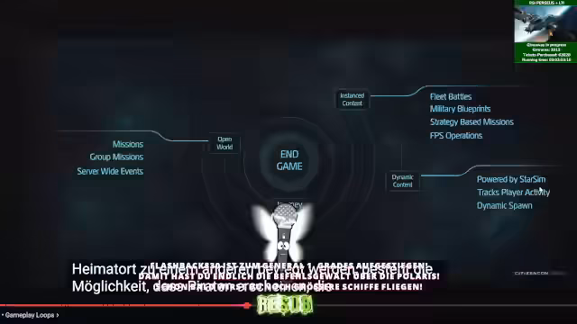 05:01:53Für erfahrene Spieler sind umfangreiche Endgame-Inhalte geplant. Dazu gehören große, koordinierte Missionen, die Flotten aus Schlachtschiffen, Unterstützungsschiffen und Jägern erfordern, sowie instanziierte Dungeons und Raids mit anspruchsvollen Endbossen. Spezialisierte Missionen, die Fußgeher-Kompetenzen erfordern, werden ebenfalls bereitgestellt. Ein zentrales Element hierfür ist 'Star Sim', ein System, das dynamisch Ereignisse, Piraten oder Flotten in der offenen Welt generieren kann, um das Spiel lebendig zu halten.