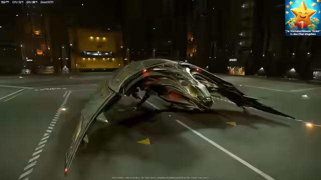 09:10:48Im Detail vorgestellt wurde das neue Schiff, die Esperia Stinger. Es handelt sich um einen schweren, stark gepanzerten Jäger des Alien-Vandul-Designs, der für seine Trägheit und hohe Schadensausgabe bekannt ist. Der Streamer testet das Schiff, zeigt den organischen Innenraum, die Bewaffnung und erwähnt den Start eines Giveaways, bei dem man das Schiff gewinnen kann. Die Preisspanne liegt bei etwa 300 Euro.