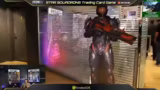 01:40:03Nach einigen technischen Vorbereitungen schaltet der Stream live zur CitizenCon in die Schweiz. Es wird eine rund zweistündige Vorführung des Events gezeigt, die aus einer Kinoleiste, einer Eventlounge und einem Bar Citizen besteht. Der Reporter berichtet vom Aufbau und der Organisation der Veranstaltung, die trotz ihrer Community-Natur sehr professionell wirkt. Es werden diverse Stände, wie der von Mifcom und dem Squadron, vorgestellt, und eine mobile Kamera führt durch die vollen Räumlichkeiten, um die Atmosphäre einzufangen.