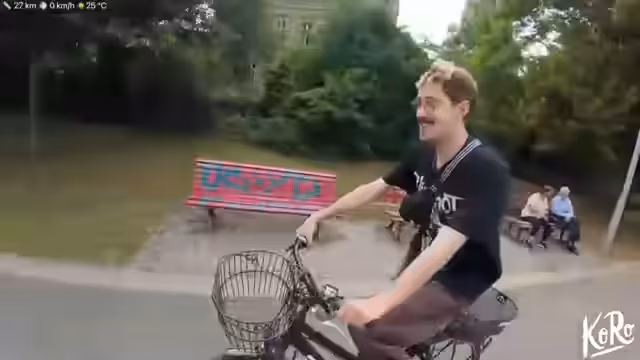 02:11:47Während der Fahrt durch Spandau führt ein gemeinsamer Runde vorbei an der Zitadelle. Der Streamer präsentiert sein modifiziertes Fahrrad mit einem neuen Korb und einem Spiegel und diskutiert die Vorteile eines 29-Zoll-Rads. Plötzlich erkennt er auf der Straße einen Bekannten, Max, und macht spontan einen Halt. Eine persönliche Begegnung und ein gemeinsames Videoanruf stattfinden, bei dem sie über ihre Fahrräder und die aktuelle Situation sprechen.