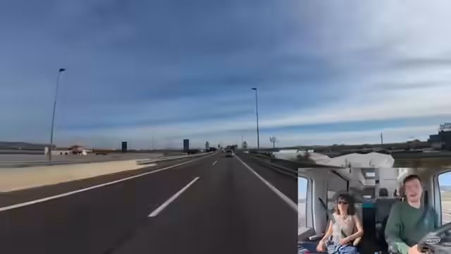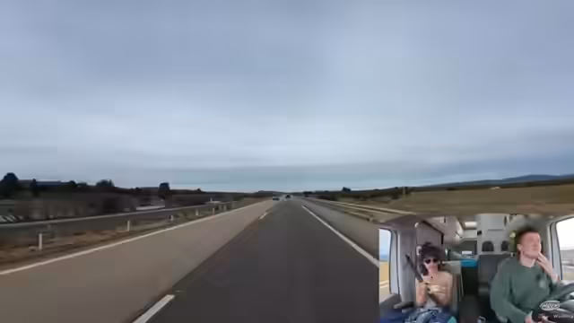 07:56:10Die Fahrt führt durch beeindruckende Landschaften, die als 'krass' und 'heftig' beschrieben werden. Es wird überlegt, wo man die Drohne aufsteigen lassen könnte, verworfen aber, da die Priorität auf dem Erreichen des Ziels liegt, bevor es dunkel wird. Die Gruppe passiert eine Stadt am Wasser, die als 'mega cool' empfunden wird. Es wird kurz über die Bedeutung von 'Camiones' (LKW auf Türkisch) diskutiert. Ein süßer Campingplatz wird entdeckt, aber die Gruppe fährt weiter. Die Internetverbindung bleibt ein Thema, und es wird die Abhängigkeit davon thematisiert. Eine Stadt wird passiert, und es wird darüber gesprochen, wie es wäre, dort zu leben. Persönliche Erfahrungen mit dem Leben in kleinen Dörfern und der bevorstehende Wendepunkt, mehr Zeit in der Stadt als auf dem Land verbracht zu haben, werden ausgetauscht. Die spanische soziale Wärme wird mit der deutschen Kultur verglichen, wobei Unterschiede in der Herzlichkeit festgestellt werden. Es werden Witze gemacht und Anekdoten erzählt, während die Fahrt fortgesetzt wird. Der Wunsch, baden zu gehen, wird geäußert, und die Schönheit der Flusslandschaft wird hervorgehoben. Die Farbe des Flusses wird bewundert und mit Seen in Österreich verglichen. Es folgen Diskussionen über Umarmungen und persönliche Distanz zu fremden Menschen.
