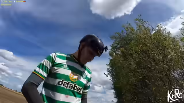 02:12:05Der Streamer beschreibt das Wetter als bewölkt und nicht mehr so heiß wie im Sommer. Er fährt noch träge und fühlt sich nicht ganz im Tourflow, obwohl es bereits 13 Uhr ist. Nach einem Riegel und einem Vitamindrink fühlt er sich energiegeladener. Er plant, entweder heute noch nach Leipzig zu fahren oder morgen früh aufzubrechen und überlegt, ob ein Stopp in Halle sinnvoll ist. Die Route führt nun über Feldwege, auf denen es genug Platz für Autofahrer zum Überholen gibt.