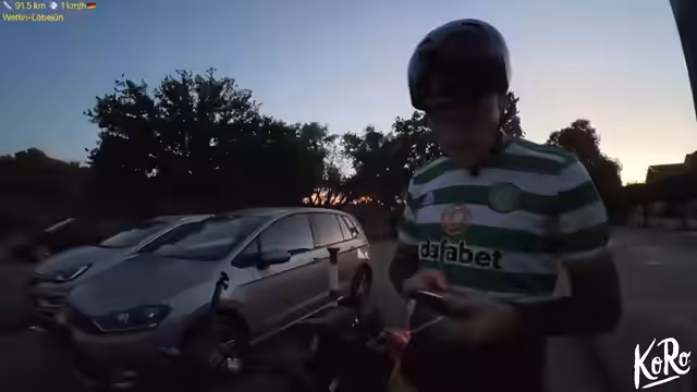 10:45:03Nachdem Streamer erfolgreich alle Geräte geladen hat und dank Vanessas Angebot eine sichere Unterkunft hat, beginnt er die Nachtfahrt nach Halle. Er packt sein Equipment zusammen und startet in die Dämmerung. Unterwegs trifft er zufällig auf Reisende aus Köln, mit denen er ein Foto macht. Die Fahrt führt ihn über Pflasterstraßen, die ihm Schwierigkeiten bereiten, aber er erreicht sein Ziel sicher.