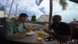 03:15:10Nach der Pause machen sich die beiden auf den Weg in ein Restaurant, um sich stärken zu können. Danny bestellt einen Fischburger, während der Streamer sich für ein vegetarisches Sandwich mit Käse und Salat entscheidet. Die Stimmung ist gelöst, und sie unterhalten sich über die im Café angebotenen Speisen, wobei der Streamer den Verlust seines Rucksacks bedauert, da er alles dort hätte verstauen können.