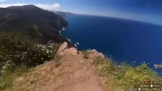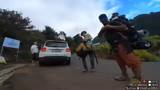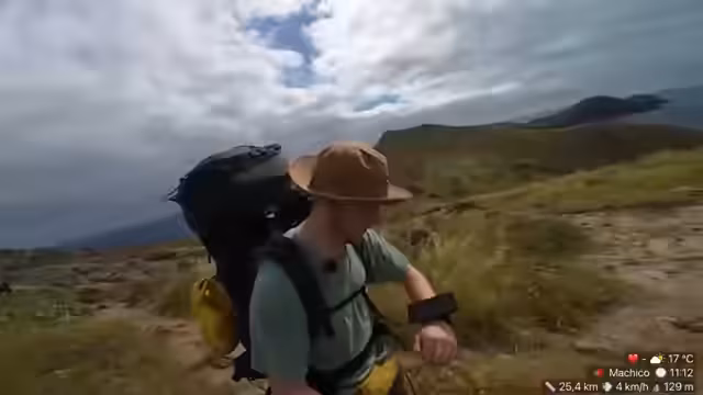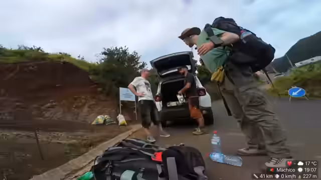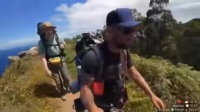00:01:00Trotz des Rucksack-Problems starten die beiden in die Wanderung und bewegen sich durch die atemberaubende Landschaft von Madeira. Sie erklären, dass sie für den heutigen Tag einen anderen, höheren Weg wählen, wahrscheinlich um bessere Internetverbindungen an den Sendemasten zu finden. Da ihr Satellit nicht auf dieser Route ausgelegt ist, erwarten sie mehr Verbindungsabbrüche und mehr 'Clip-farmen', was bedeutet, dass der Stream eher unterbrochen sein wird.