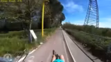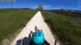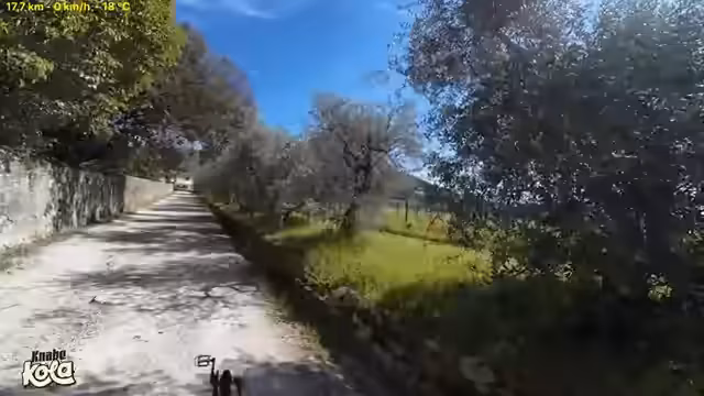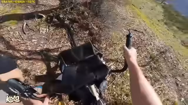 00:20:24Die Anfahrt zum nächsten Streckenabschnitt gestaltet sich als mühsam, da ein dichter Laubberg überquert werden muss. Während des Schiebens des Tandems geht eine Tasche ab, was jedoch als nicht schlimm eingestuft wird. Anschließend kommt es zu einem unrühmlichen Sturz mit einem aufgespritzten Bananenbeutel. Der Streamer ist froh, dass die Drohne und das Handy unbeschädigt bleiben und die Weiterfahrt möglich ist.