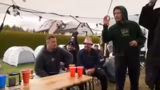 04:12:45An der Bühne von Evil Jared angekommen, wurde das weitere Programm besprochen. Die Show umfasste einen Intro-Auftritt, Flaggenwandler, ein interaktives Bierpong-Spiel mit Publikumsbeteiligung und eine Bier-Verteilung für das siegreiche Team. Ein besonderes Highlight war der Einsatz von Flammenwerfern durch einen der Musiker, was als 'extrem' und 'krass' bezeichnet wurde. Der Streamer betonte die Aufforderung an das Publikum, mitzumachen und Spaß zu haben, und dass es keine No-Go's auf der Bühne gebe.