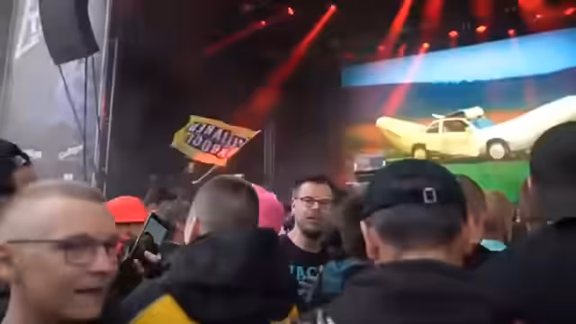 05:08:13Das Geschehen auf der Bühne eskaliert mit unvorhergesehenen Aktionen wie Crowdsurfing, der die Sicherheitskräfte überfordert. Der Streamer beschreibt die Szene als extrem und krank, und ein kurzzeitiger Ausfall der Technik wird gemeldet. Trotz des Chaos werden positive Reaktionen aus dem Publikum verzeichnet, und die Energie auf der Bühne bleibt hoch.