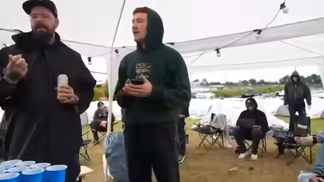 03:10:21Nach dem intensiven Beerpong-Wettbewerb wechseln die Streamer zum Festivalprogramm. Der Plan, bestimmte Bands wie Heaven Shall Burn, Slipknot und Tsukogi zu sehen, wird angesprochen. Dabei wird auch eine Diskussion über unkonventionelle Verhaltensweisen in der 'Moshpit', wie das Spielen von Magic: The Gathering, geführt. Der Streamer reflektiert über den Vergnügungsaspekt und die mögliche Respektlosigkeit gegenüber den Künstlern.