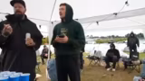 00:00:00Der Stream beginnt mit chaotischen Szenen auf dem Festivalgelände. Es wird über eine Maskierung und einen E-Scooter-Akku gesprochen, der scheinbar geklaut wurde. Später taucht ein mit Vollmaske vermummter Franky auf, der an einem Fahrzeug bohrt und für Verwirrung sorgt. Der Streamer beobachtet das Geschehen und berichtet von einem nassen Salat, was auf das schlechte Wetter hindeutet. Einige der anfänglichen Kommentare deuten auf technische Schwierigkeiten oder unklare Treffpunkte hin.