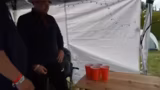 02:03:54Das Bierpong-Turnier ist in vollem Gang und zeigt einen lockeren, aber unprofessionellen Spielstil. Der Streamer beschreibt die dynamische und chaotische Atmosphäre des Spielfeldes. Plötzlich tauchen "Hygienebecher" auf, die bei Berührung oder Fall als dauerhaft verschmutzt gelten, was zu einer zusätzlichen, ungewöhnlichen Regel im Turnierverlauf führt und für zusätzliche Verwirrung sorgt.