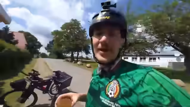 02:13:56Bei einer weiteren kurzen Rast gerät das Gespräch auf private Themen. Es wird humorvoll der Toilettengang während von Radtouren diskutiert, und der Streamer erinnert sich an eine wortlose Übergabe eines Cannaböls durch einen Fan, das er versehentlich für eine Creme gehalten und im Gesicht verteilt hat. Danach wechselt das Thema zu den Reisezielen, wobei Lübeck, die Marzipan-Hauptstadt, erwähnt wird, der Streamer aber persönlich keinen Marzipan mag. Ein spontaner Treffen mit einem Zuschauer, Hugh, wird angekündigt.