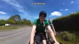 02:07:45Während der Fahrt tritt ein Problem mit der Hinterradbremse auf, da die Bremsbacke schief liegt und an einer Stelle im Reifen anliegt, was ein Klacking-Geräusch verursacht. Die Radfahrer halten an, um die Bremse justieren zu können, während der Streamer für Unterhaltung sorgt. Kurz danach machen sie eine kulinarische Pause, wo der Streamer einen XXL-Hotdog isst, der ihm Energie für die weitere Strecke geben soll. Das Essen führt zu humorvollen Kommentaren und der Feststellung, dass der Kilometerzähler den "Hotdog" vielleicht mitberechnet hat.