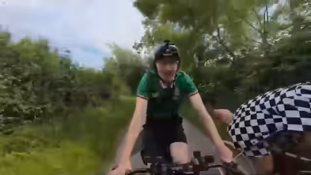 02:36:12Ein zufälliges Treffen führt zu einem spontanen Mitfahrer am Tag 4 der Deutschland-Tour. Nach dem Austausch von Höhenangaben und der Wertschätzung für die Ausrüstung, insbesondere die alte Rahmengangschaltung, wird das Angebot gemacht, die Fahrräder zu tauschen. Nach Kilometer 11 wird eine Pause eingelegt, um die Technik zu erklären und bevorzugt an eine Bank mit Aussicht zu fahren. Das Gespräch dreht sich um persönliche Fahrraderfahrungen, von der Schulzeit mit einem pinken Rennrad bis hin zum BMX-Fahren und geplanten Trickversuchen.
