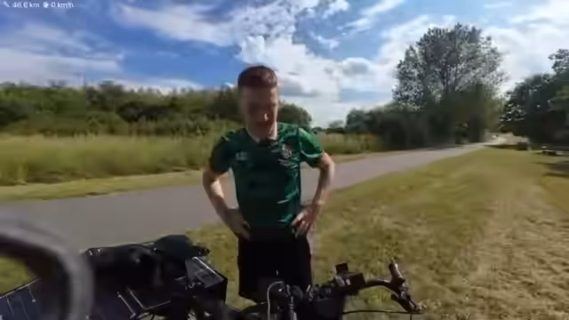 00:45:08Während der Radtour und in Pausen gibt es mehrere Begegnungen und persönliche Einblicke. Hugh, der am Vortag dazu gestoßen ist, begleitet den Streamer und lobt sein gepflegtes Fahrrad und die hochwertigen Taschen. Eine überraschende Kündigung bei seinem ehemaligen Arbeitgeber, Wismar TV, wird angesprochen. Er berichtet von seiner Tätigkeit als Mediengestalter und Cutter und gibt zu, dass er vorhat, seinen YouTube-Kanal auszubauen, da sein früherer Job weggefallen ist. Seine Freundin, mit der er seit neun Jahren in Wismar zusammenlebt, und die Liebe zur Stadt werden ebenfalls erwähnt.