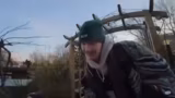 00:57:37Im nächsten Schritt begibt sich der Streamer nach draußen zur Schaukel. Es wird ein Sicherheitsgurt angelegt und er wird maschinell angeschwungen. Die Erfahrung wird als aufregend beschrieben, da man über den Rand des Turms blickt. Während der Fahrt nimmt der Streamer verschiedene Clips und Fotos auf, um den Zuschauern die Perspektive zu zeigen. Die Abenteuer- und Mutprobe gilt als absolviert und der Streamer ist von der Erfahrung überzeugt.