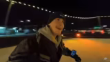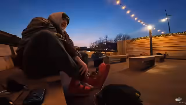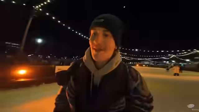03:41:25Während der Fahrt entdeckt der Streamer zufällig eine öffentliche Schlittschuhfläche. Er ist begeistert von der Idee, da es fast 18 Uhr ist und noch hell. Nachdem er die Preise und die Bedingungen überprüft hat – 14,50 Euro für zwei Stunden – entschließt er sich, einen Versuch zu wagen. Er wechselt das Fahrrad gegen Schlittschuhe aus und kommentiert den Prozess humorvoll. Er ist gespannt, wie das auf dem Eis wird, und beschreibt das Schlittschuhfahren als 'geilen Vibe' und 'Deep Talk'.