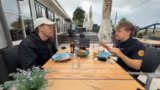 04:22:39Nach einer kleinen Fahrt erreichen die Streamer ein Bistro an einem Yachthafen. Nach kurzer Orientierung finden sie einen Sitzplatz im Außenbereich. Es wird ein intensiver Blick auf die Speisekarte geworfen, mit besonderem Fokus auf holländische Spezialitäten wie Bitterballen und verschiedene Pommes-Sorten. Auch das Getränkeangebot, insbesondere ein alkoholfreies Bier, wird ausgiebig getestet und positiv bewertet.