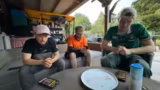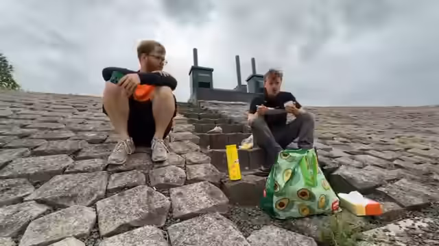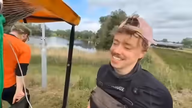 03:50:58Die Gruppe erreicht eine Fähre für 4,50 Euro und eine weitere für 2,25 Euro. Es werden Erinnerungen an den Niederrhein ausgetauscht und der Fährmeister ist begeistert. Es wird darüber gesprochen, dass für die finale Strecke noch 60 Kilometer bis Rotterdam zu bewältigen sind. Der Streamer fühlt sich schlapp und ohne Power, vermutet aber, dass es am Fehlen von Warmem Essen liegt, insbesondere an warmen Nudeln mit Tomatensauce.