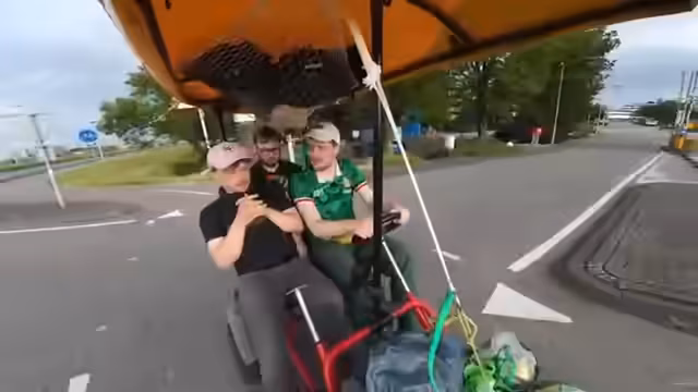 08:19:02Die Streamer machen eine Pause und holen Wasser, wobei sie ihre teilweise nasse Kleidung und den Geruch ihres Schweißes thematisieren. Sie fahren mit ihrem Kettcar im Durchschnitt circa 8,8 km/h. Während der Fahrt wird festgestellt, dass Rotterdam mit dem Auto nur noch 20 Minuten entfernt ist. Es folgt eine Diskussion darüber, wie viele Kilometer sie insgesamt bereits zurückgelegt haben.
