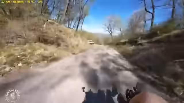 00:15:50Nach den Vorbereitungen beginnt die Abfahrt, die zunächst als Spaß und Genuss beschrieben wird. Die Strecke ist aber teilweise sehr anspruchsvoll mit Schotter und Schlaglöchern. Kurz nach dem Start der Fahrt in die Berge stellt Knirps ein ernstes Problem an seinem Fahrrad fest: die Hinterradbremse funktioniert kaum noch und fühlt sich extrem weich an. Er muss die Abfahrt stark verlangsamen und bremsen in Intervallen, um eine Überhitzung der Bremsbeläge zu verhindern. Dies führt zu erheblichen Verzögerungen und Unsicherheit bei der Fortbewegung.