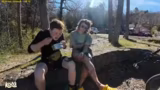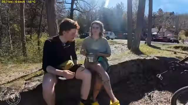 04:33:07Die Streamer unterbrechen die Tandemfahrt, um eine Pause einzulegen. Einer von ihnen hat eine blutende Lippe und eine Beule an der Nase. Während der Pause wird Wasser getrunken und die verbleibende Tagesstrecke bis zum Sonnenuntergang besprochen. Die Route führt nun überwiegend bergab, aber es wird befürchtet, dass der vorhandene Wasservorrat für die restliche Strecke und die Übernachtung nicht ausreicht. Daher wird geplant, an einem Wasserhahn im nächsten Dorf Wasser nachzufüllen.