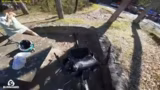 07:23:13Die Gruppe findet einen versteckten, aber abschüssigen Platz im Wald, um ihr Zelt aufzuschlagen. Der Aufbau des Zelts verläuft nach anfänglichen Schwierigkeiten reibungslos. Die Wahl des Ortes ist bewusst diskret gehalten, um keine Aufmerksamkeit zu erregen und Wildcamping-Regeln zu beachten. Ein ankommendes Auto sorgt für kurzzeitige Aufregung.