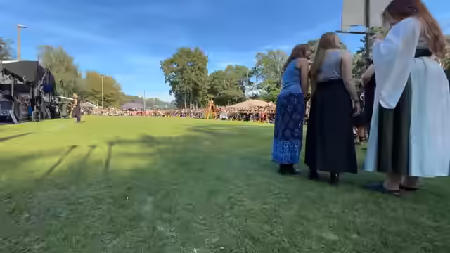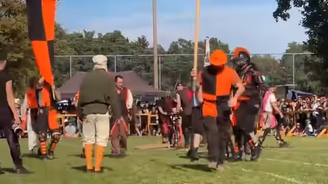 04:01:43Es wird eine Minipause angekündigt, in der es kurzzeitig kein Bier geben wird, da die Helfer für ein Foto aufs Feld geholt werden. Die Teams werden zu ihren Einsatzstellen geschickt. Es wird betont, wie viel Arbeit und Liebe zum Detail in der Organisation des Events steckt. Die Sonne steht tief, und es wird gefragt, ob man beim Merch-Stand vorbeischauen kann. Der Bierwagen wird abgelöst, und alle Helfer werden aufgefordert, sich zu versammeln. Die Zelte der einzelnen Teams werden gezeigt, und die Vorfreude auf das Streitwagen-Thiossen steigt. Es wird gefragt, was bisher das Highlight der Wettkämpfe war. Es gibt die Möglichkeit, ein T-Shirt von den Velo-Valkyries zu kaufen. Alle Helfer werden gewürdigt. Der Sanitätsstand ist gut besucht. Es wird über Streams mit kleinen Live-Konzerten gesprochen. Es wird über die technische Umsetzung von solchen Streams diskutiert. Es wird betont, dass das Event mega ist. Es wird nach Essen gesucht, da großer Hunger herrscht. Die Schlange für das Essen ist sehr lang. Es wird nach Alternativen gesucht. No Future wird für den Raid und die 100 Kilometer beim letzten Sommertag gegrüßt. Es wird das Zwergenpömpeln angekündigt, eine Knappendisziplin.