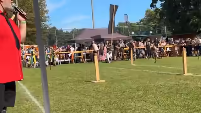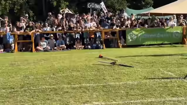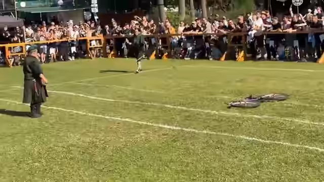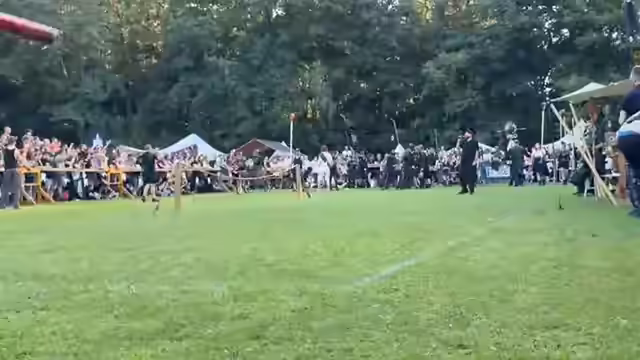 02:21:11Der Stahlroßweitwurf beginnt. Die Teams kommen eingelaufen, darunter Maximal Royal und Nieten und Kekse. Jeder Teilnehmer hat zwei Würfe, deren Weite addiert wird. Ein Teilnehmer des Teams Nieten und Kekse legt mit einer Weite von 6,65 Metern vor. Er verändert seine Technik beim zweiten Wurf, fällt aber zurück. Der Streamer hat technische Probleme mit seinem Router. Die Valkyries sind an der Reihe. Ein Teilnehmer wirft über 7 Meter. Die kanadische Eiche von Team Maximal Royal wirft 7,12 Meter und später sogar über 8 Meter. Ein Teilnehmer von Team Menteli übertritt die Linie, was zu einer Wertung von 0 Metern führt.