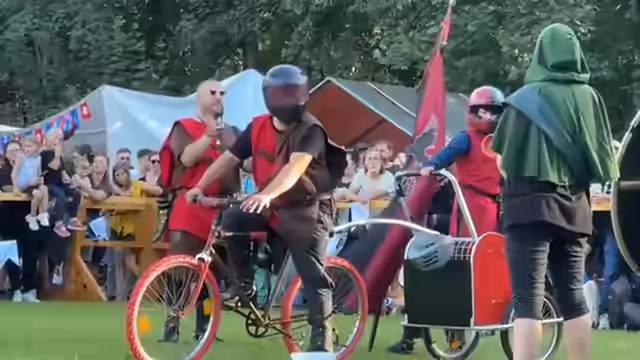 Highlights und Beginn der Fahrrad Ritterturnier Kämpfe