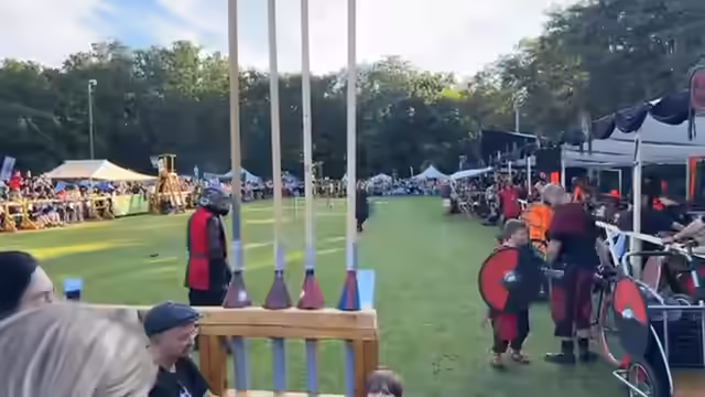 05:01:54Der Streamer lobt den Erbauer der Arena und der Wurzgasse, Morbus der Miese, für seine unglaubliche Arbeit und sein Engagement. Die Streitwagen sind bereit und die grünen Flaggen werden gehisst, was das Signal für den Beginn der Kämpfe gibt. Der erste Kampf beginnt mit einem Lanzenbruch auf beiden Seiten. Der Streamer kommentiert die Intensität der Kämpfe und wünscht sich, dass jemand vom Fahrrad fällt. Es folgen weitere Kämpfe mit Lanzenbrüchen und Treffern auf beiden Seiten. Die Zuschauer sind begeistert und die Stimmung ist wild. Der Streamer filmt mit ausgefahrenem Stativ, um eine gute Perspektive zu gewährleisten. Er beschreibt einen besonders heftigen Treffer, bei dem jemand fast vom Rad fällt. Vikings treten gegen Primal Path an, wobei der Streitwagen der Primal Path aus einem Einkaufswagen besteht. Der König der Primal Path trägt eine beeindruckende Rüstung. Es gibt Probleme mit dem Banner, das im Weg ist. Der Einkaufswagen der Primal Path muss mit einem Seil repariert werden. Es gibt eine Essenspause mit veganen Bratwürsten. Der Streamer lobt die fairen Preise und die Möglichkeit der Kartenzahlung.