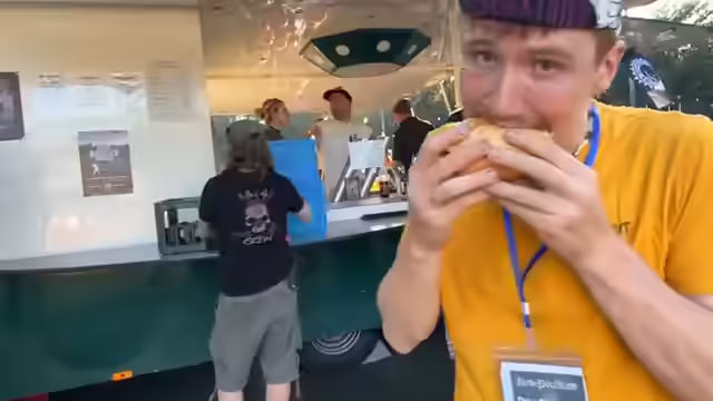 05:15:56Der Streamer bedankt sich für einen Prime Zartmann und freut sich über Zuschauer, die vom Battle nach Hause gekommen sind, um weiterzuschauen. Er bemerkt, dass mehr los ist als im Vorjahr und dass der Einkaufswagen der Primal Path repariert werden muss. Es folgen weitere Kämpfe mit beidseitigen Treffern. Der Streamer will dicke Hits sehen, aber kein Blut. Er vergleicht die Aufnahme mit einer Drohnenaufnahme. Es gibt einen Pflanzenladen namens Holländer in Berlin. Der Streamer möchte ein Stechen sehen und kommentiert die Essensauswahl, die vegane Optionen wie Bratwurst im Brötchen und Chili Dog im Brötchen umfasst, sowie Soja-Gulasch und Bauerntopf. Es gibt auch Leberwurststolle und Käsestolle. Er bestellt zweimal vegane Bratwurst im Brötchen mit Senf und muss den Transport des Essens organisieren. Er hofft, die Velo-Valkerys nicht zu verpassen und holt sich eine Apfelschorle. Er lobt den stabilen Preis von drei Euro für einen halben Liter. Die vegane Wurst wird als Chatthema diskutiert und für gut befunden. Der Streamer betont, dass er mehr essen und trinken muss und dass er sich auf keiner Veranstaltung so wohlgefühlt hat wie hier. Er erwähnt, dass ein Clip vom Berlin-Pattle-Battle auf Instagram 7,5 Millionen Klicks bekommen hat und weltweit verbreitet wurde.