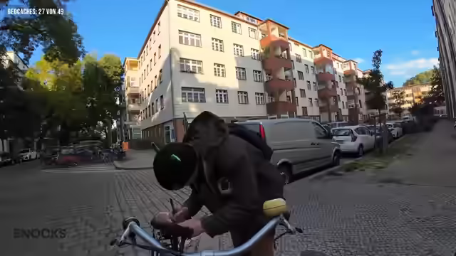 Eine Fahrradtour durch Berlin kombiniert Geocaching mit einer Partnerschaft mit Knabe-Cola. Ein geplanter Segeltrip nach Leipzig wurde abgesagt, stattdessen geht es spontan nach Prag. Baumklettern, Stifttausch und die Suche nach dem 100. Cache prägen den Tag. Eine Currywurst-Lieferung für einen Zuschauer rundet das Abenteuer ab. Respekt im öffentlichen Raum wird großgeschrieben.